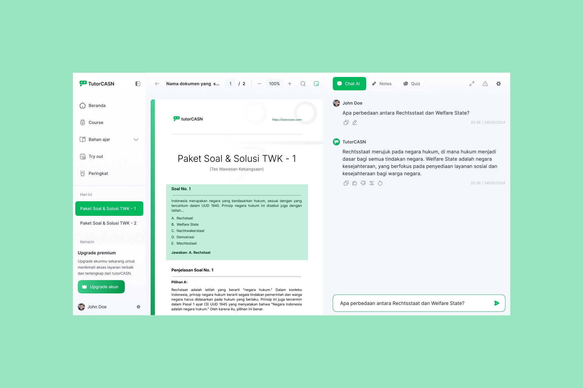The user site is where learners access TutorCASN's core features, including Chat AI, notes, and quizzes. Designed for ease of use, it supports users in their preparation journey with intuitive navigation and personalized tools.